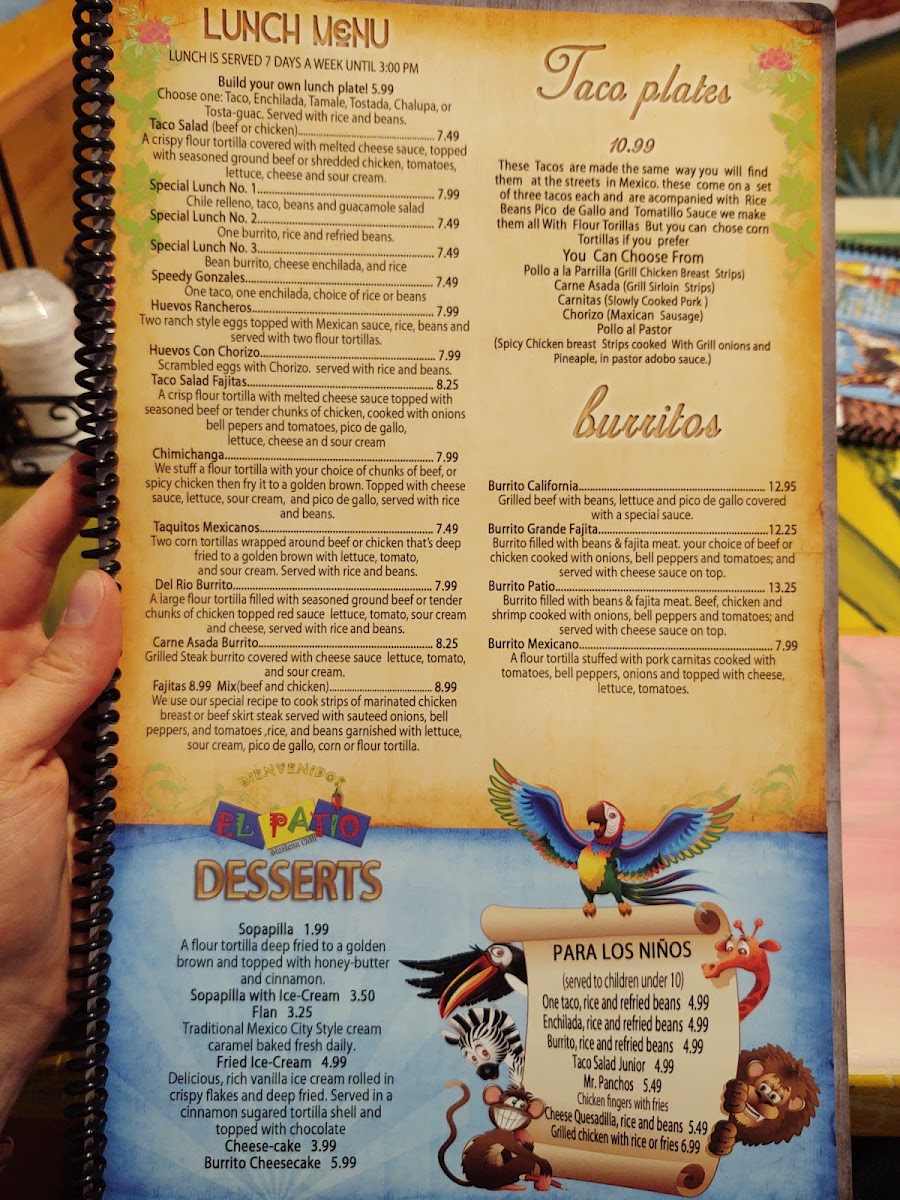 Customers rave about the generous portions and the delicious margaritas, complementing the skillfully prepared dishes. Whether you're a fan of traditional tacos or curious about their Taquitos Mexicanos, El Patio is a delightful culinary journey worth embarking on.